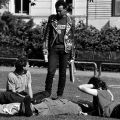 Auf einen Tipp hin machte ich 2013 mit Klaus Hering ein Date klar; der hatte zwischen 1983 und 1985 unzählige Schwarzweißfilme verschossen, wie man erzählte. Und dann, vor Ort, Buddeln in Goldnuggets: 1134 Fotos, viele davon allererste Sahne, und nicht die üblichen Bands rauf und runter, sondern Streetpix ohne Ende.