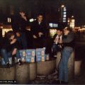 Auch Wolfi und Rübe kämpften sich schließlich den Weg nach draußen frei, sie wirkten wohlauf und unverletzt, freilich ziemlich aufgewühlt und angepisst. Der Störer und seine Freunde waren im Getümmel irgendwann verschwunden und hatten sich irgendwohin absetzen können. Rausgekommen waren die Störer aber noch nicht, und so gingen wir erstmal nicht wieder rein. Es dauerte etwas, bis sich der Laden leerte, und ich meinte auch einen Teil der Aggressoren im Pulk der Leute zu erkennen, die das JuZ verließen. Wir warteten noch ein paar Minuten, bis einer der Leute vom JuZ kam und meinte, die Schläger seien abgezogen, wir könnten unsere Sachen abbauen.