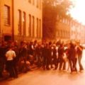 Inzwischen war auch Lenker wieder aufgetaucht. Es hatte niemand von uns mitbekommen, dass er ins Büro eingeschlossen worden war. Dort erlebte er traumatische Momente, als die Pöbler versuchten, die Tür einzutreten, gegen sie schlugen und hämmerten, herumschrieen, er solle herauskommen, und ihm wurde klar, warum ihm der Queue angeboten worden war. Er hatte ihn nicht angenommen und im Büro war auch nichts zu finden, das als Waffe hätte dienen können. Nach einer Weile schien der Elan der Frankfurter nachzulassen, und sie brachen die Aktion ab. Nachdem sie das Gebäude verlassen hatten, konnten die Mitarbeiter vom JuZ unseren Basser wieder aus dem Büro befreien.