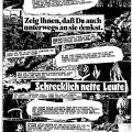 Das war’s dann auch schon. Wie gehabt mein Dank an alle, die PUNKFOTO finanziell oder mit Material unterstützen. Und die, die’s noch nicht gemacht haben, könnten mir wenigstens ein paar Schundhefte oder Gummibärchen schicken … auch kleine Geschenke halten meinen Arsch in Bewegung!